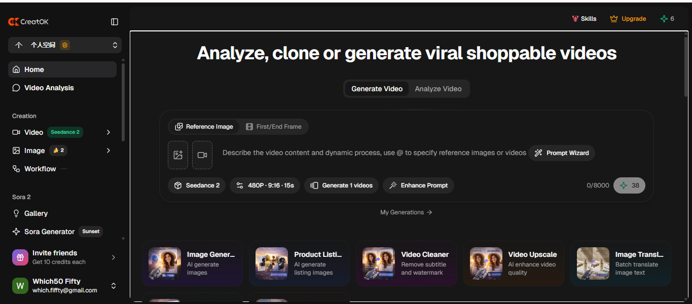 CreatOK is an AI-powered TikTok video generator designed for e-commerce sellers and marketers. It creates original sales videos from product images and descriptions, clones viral TikTok trends with one click, and publishes directly via official API without watermarks. Featuring smart prompt optimization, multi-model generation, and team collaboration, CreatOK streamlines high-volume content production for maximum social commerce impact.
