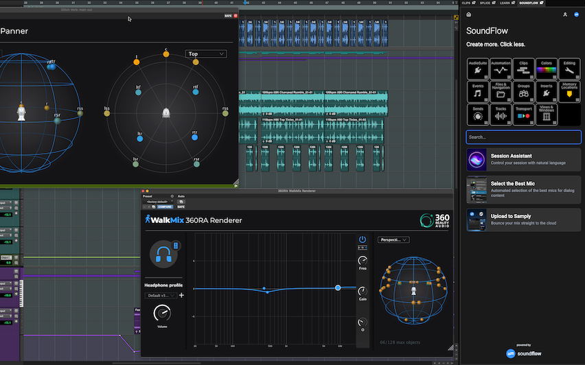 Flex Time stretches audio clips nondestructively, ideal for syncing loops or tuning vocals without artifacts. Spatial Audio tools mix in 3D for headphones that wrap sound around the listener.